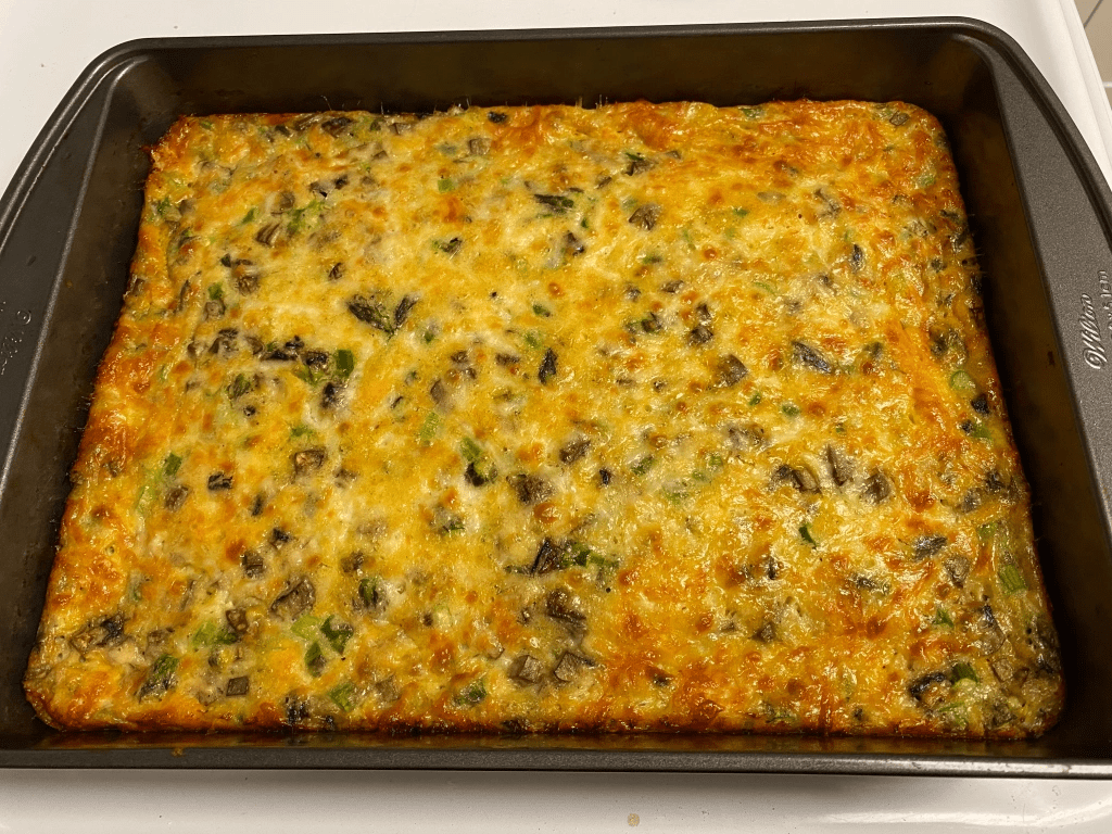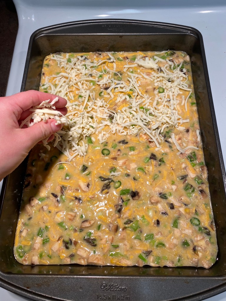 3. Pour the rest of the batter into pan and gently stir in. Add extra grated cheese to the top.