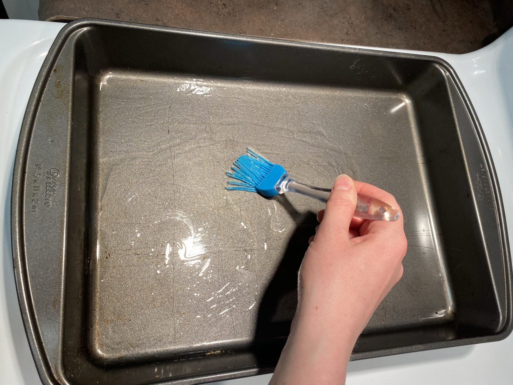 - Preheat oven to 350 degrees F, and hrease 9”x13” baking pan.
