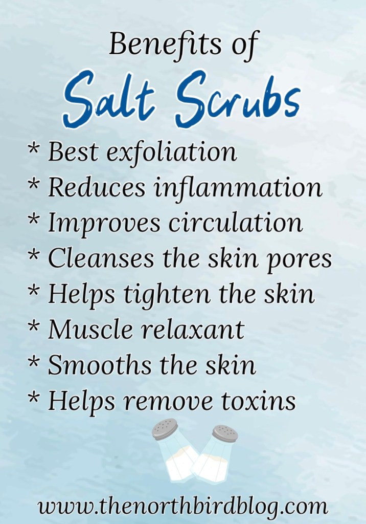 Sugar and salt are most commonly used as an exfoliant, and while there are many types of sugars and salts, my opinion is that the bigger the granules are, the better it will rub on your skin. For example, I would recommend a coarsely ground sea salt over an iodized-finely ground table salt. However, I have also enjoyed learning of many more creative ingredients that can be used as the rough element in a scrub: oatmeal, coarsely ground coffee beans, rice, some seeds, veggies and fruits.