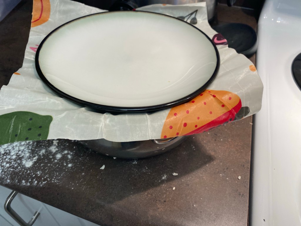 - Cover with beeswax cover or plastic wrap and rest for 30 minutes.