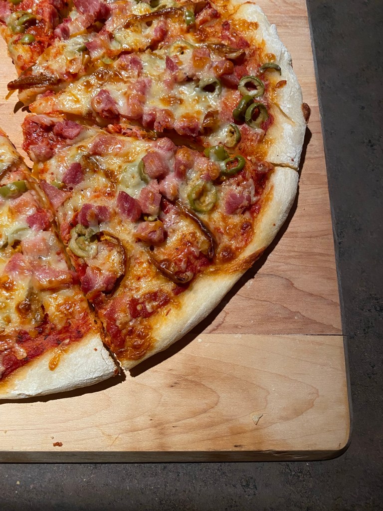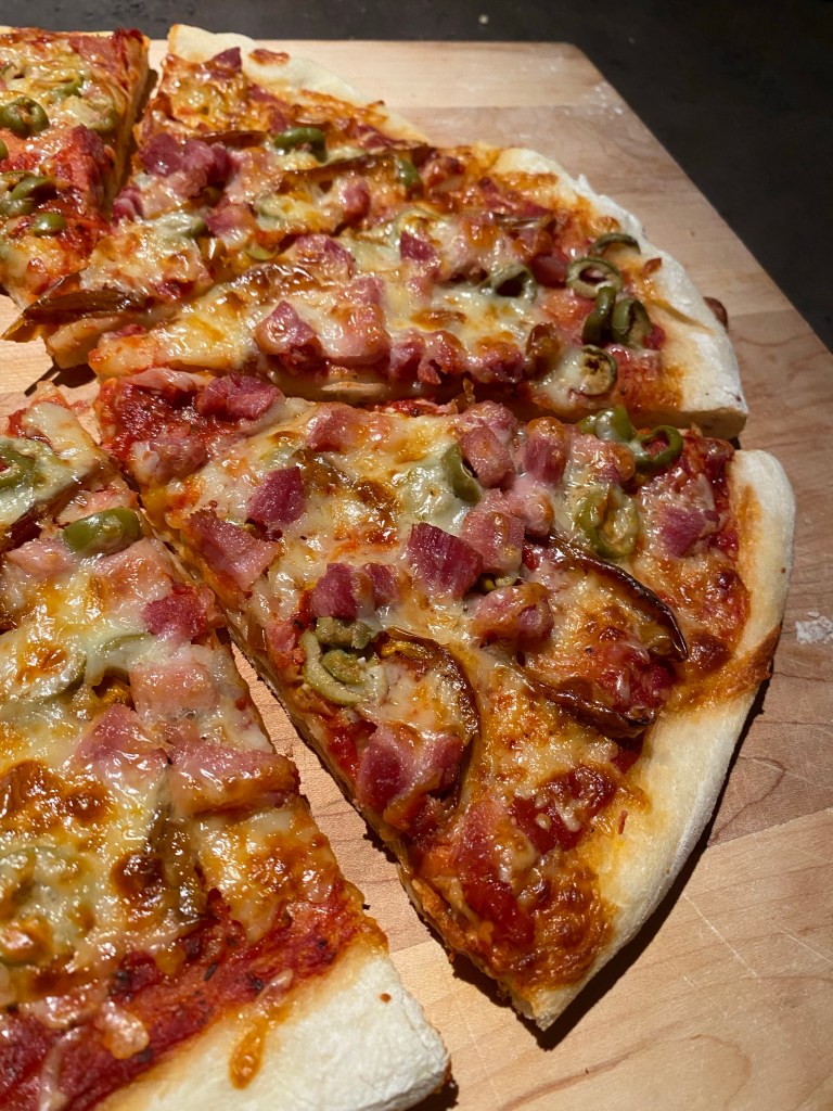 Every Friday night we have homemade sourdough pizza (unless we are not home or it is simply way to hot in the summer to use the oven!). We pair this with watching a family movie and setting up the screen projector to have a fun, relaxing family time while munching on delicious pizza.