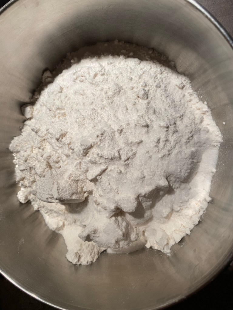 Sourdough is made using a fermented mixture of flour and water, called the “starter”, and mixed with more water, flour, and usually salt. The dough naturally rises as it ferments during resting stages.