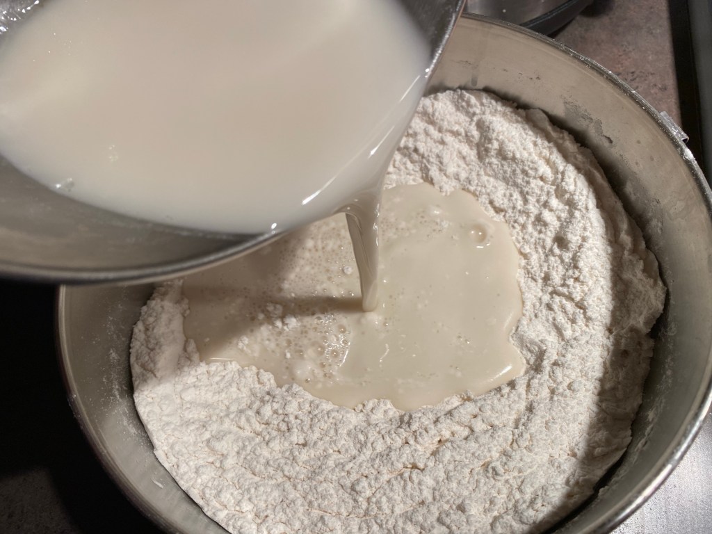 There is a lower amount of gluten in sourdough baking, which is why the dough needs to be “stretched” multiple times to help it expand and become fluffy.