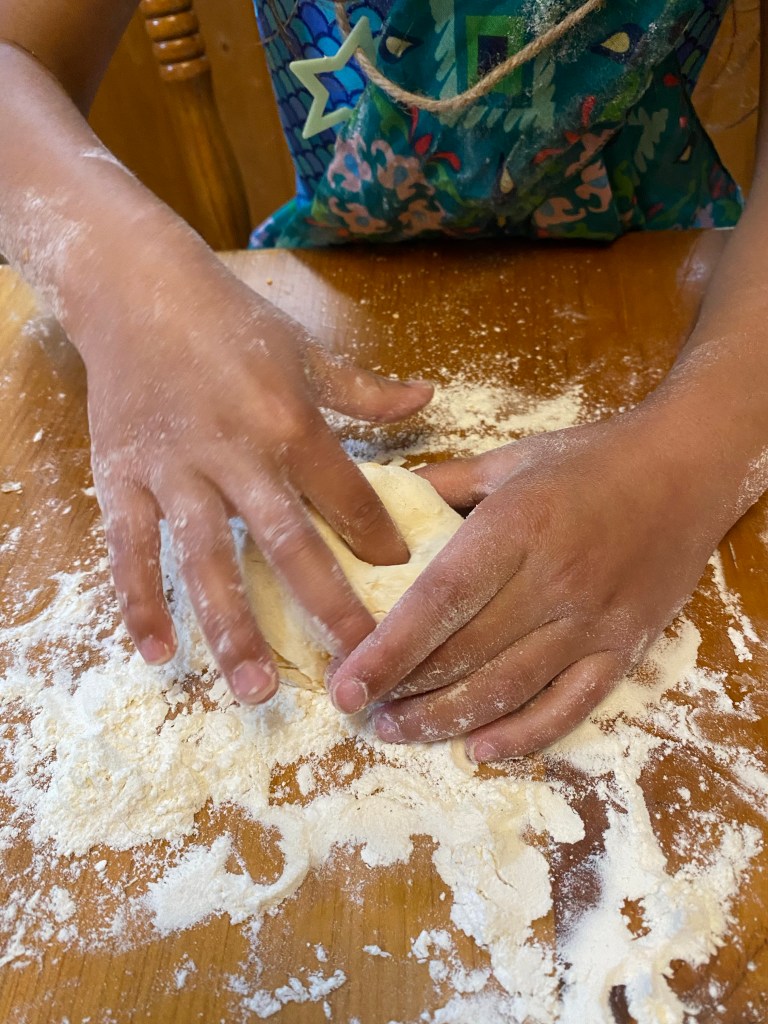 4. Form each piece into a flattened “ball” then poke fingers through the middle to create a hole.