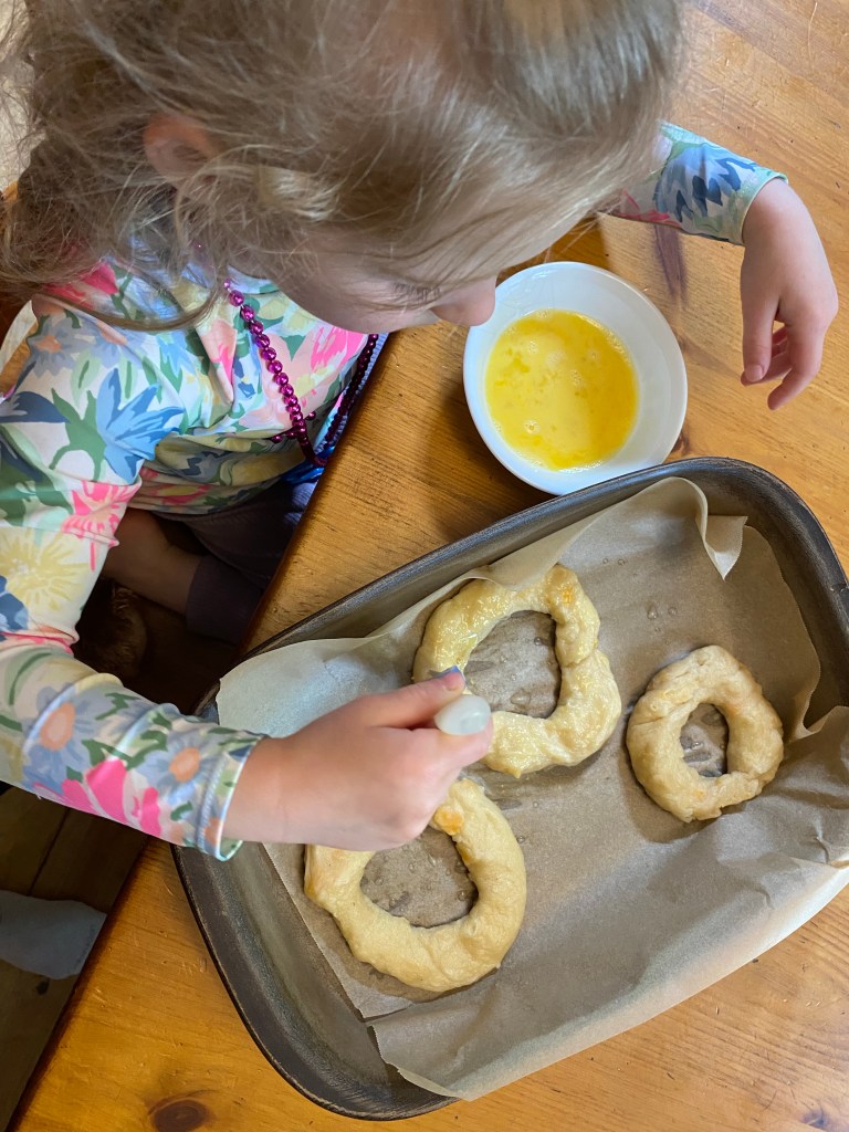 My daughter L had a lot of fun making these bagels with her two cousins A & M. It was a great homeschooling activity and they loved shaping the bagels and picking what flavours they wanted to make (and eat later!)