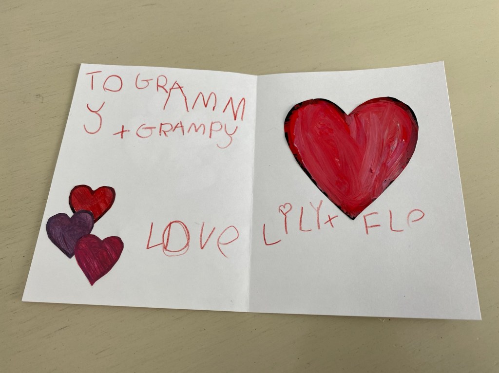 - Glue remaining hearts on the inside of card and write/decorate as desired.