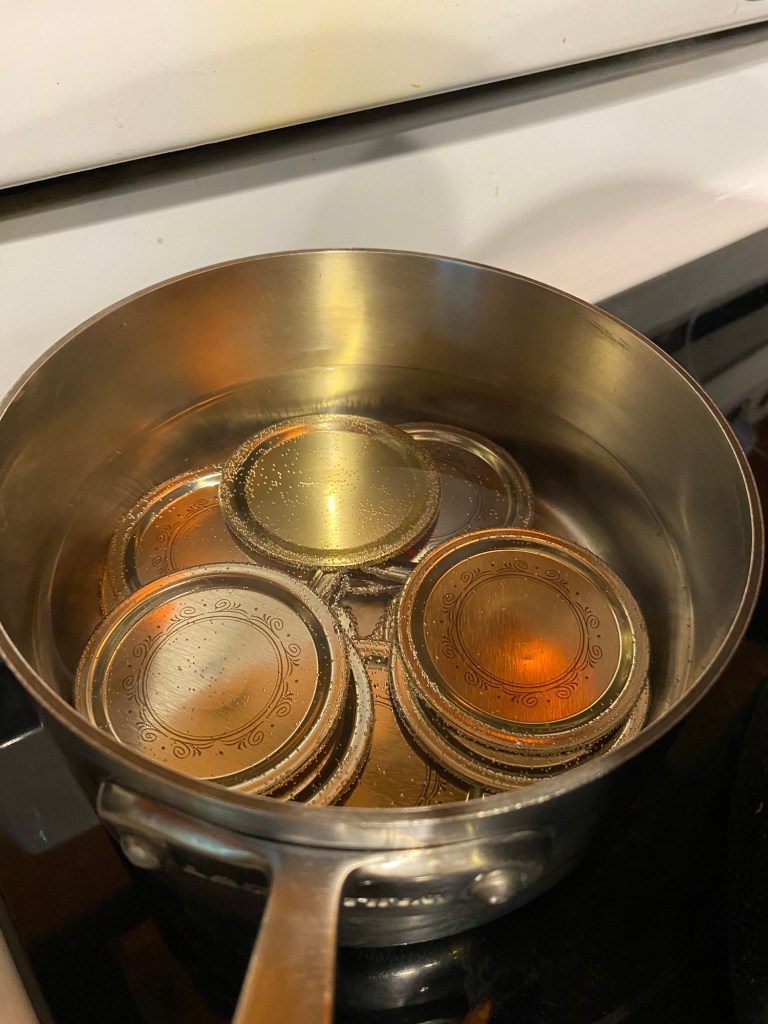 - Place cleaned lids in a small saucepan and put on low/med on the stove.