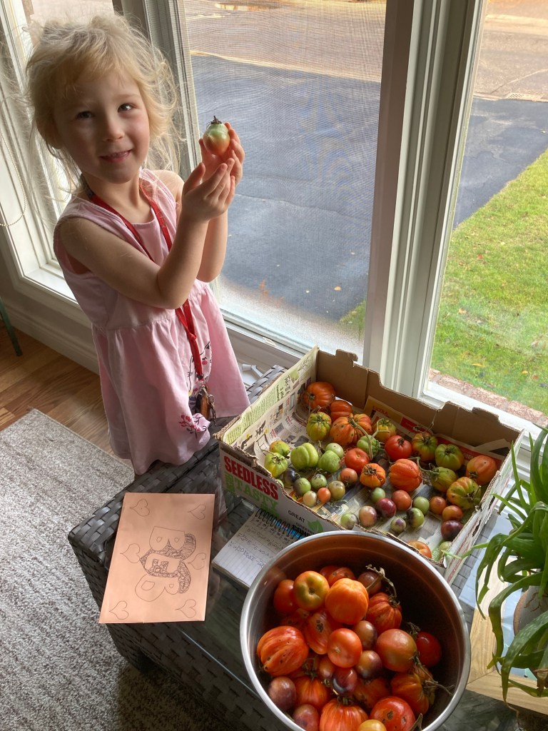 While there are many recipes found online that make absolutely delicious tomato sauce (I’ve tried so many!), this simple recipe is what I’ve been doing for the last few times we’ve had tomatoes to harvest.
