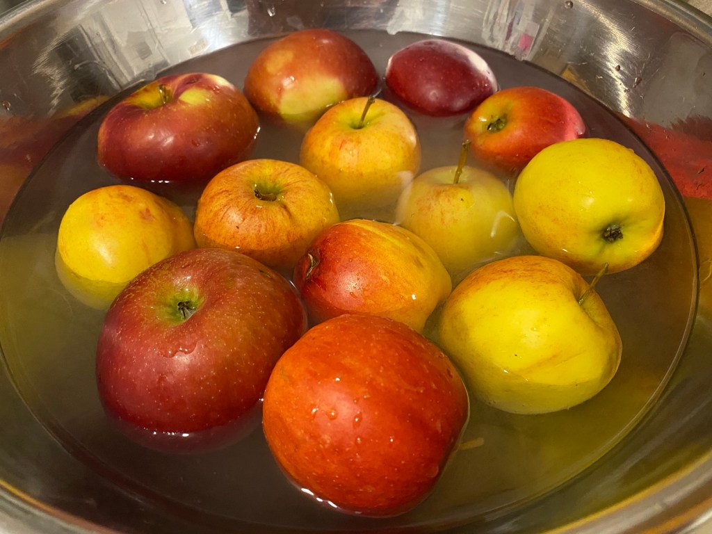 - Wash apples, slice and peel. Make sure to discard any bad bits.