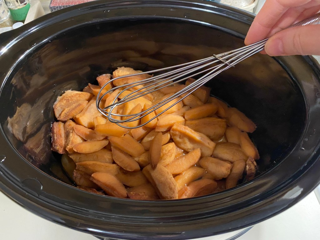 - Put apple pieces into crockpot and turn to low, cooking slowly 8-12 hours or overnight.