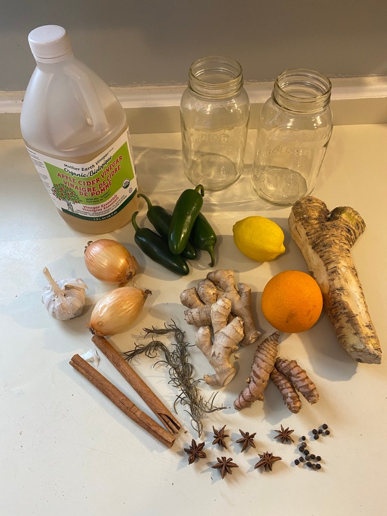 A powerful natural tonic made from hot peppers, root vegetables, spices, citrus, herbs, and fermented in apple cider vinegar.