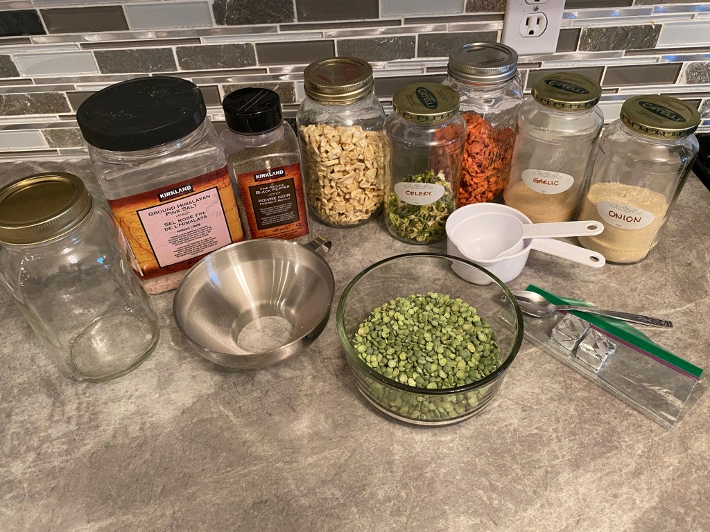 - Green split peas are now separate from the rest of ingredients and can be soaked in the jar or another bowl overnight.
