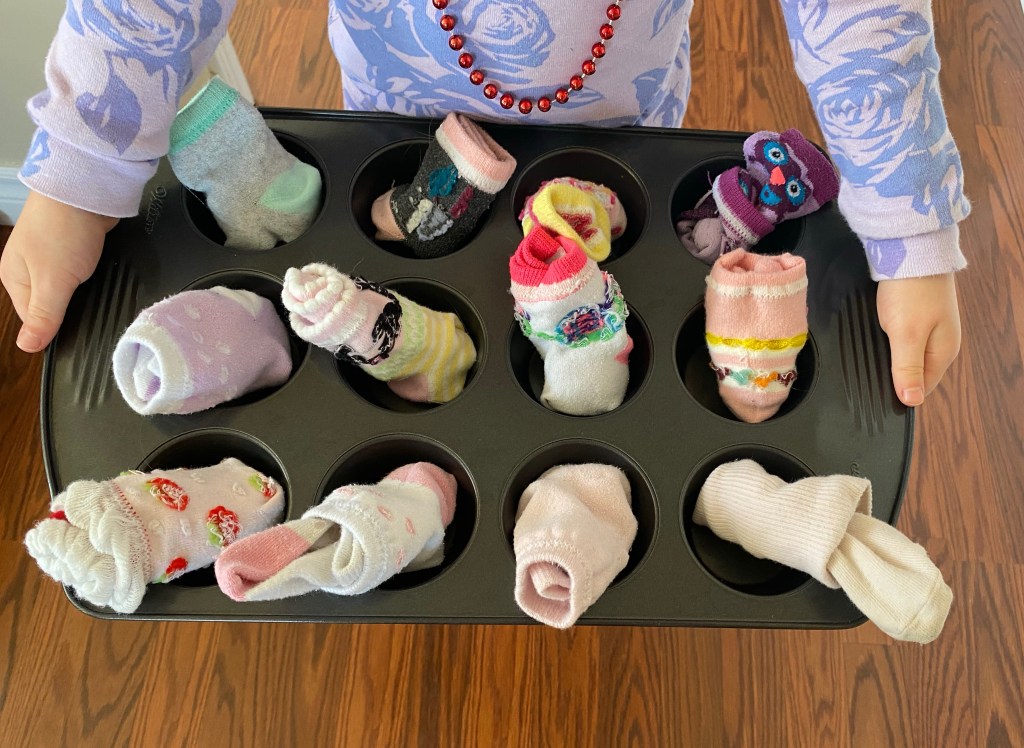 It’s not always easy to try to get wriggling toes or tiny squirming fingers to cooperate for this craft, so I definitely suggest having someone help hold your little one still while you gently push their feet or hands into the rolled out and ready dough!