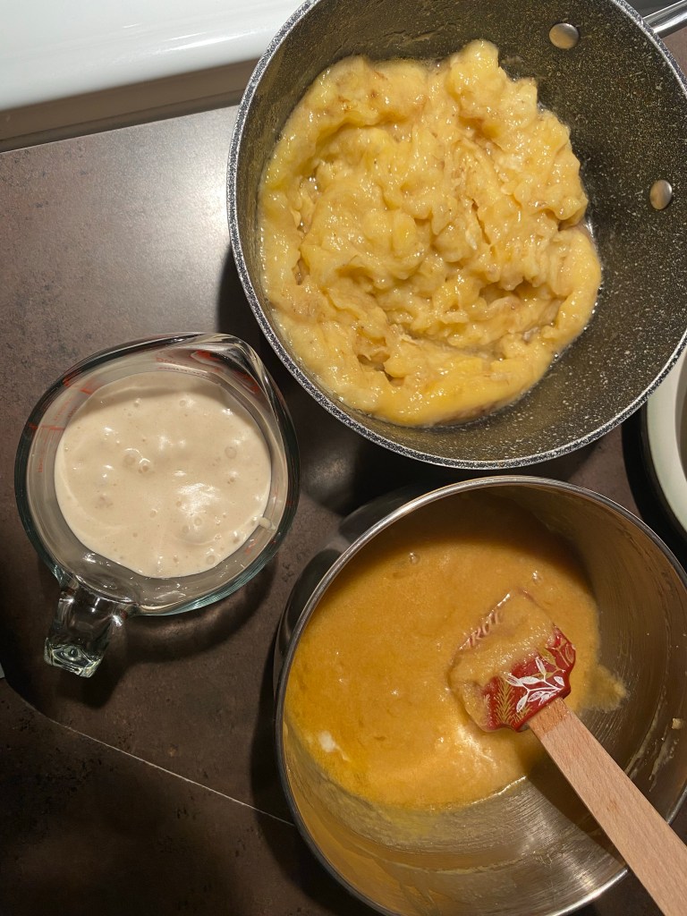 Add the sourdough starter (OR Eggs) and vanilla and mix until fully combined and smooth.