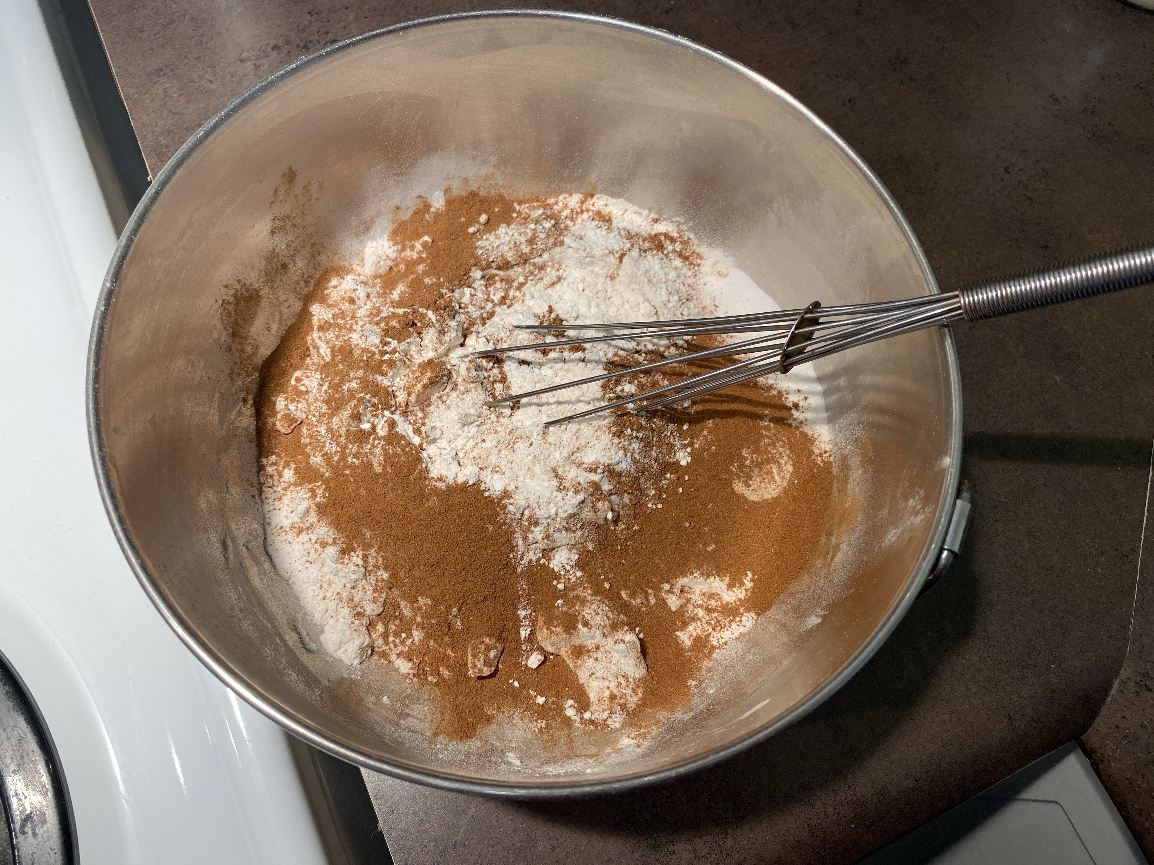 4. In a separate bowl, sift together the flour, baking soda, baking powder, sea salt and cinnamon.