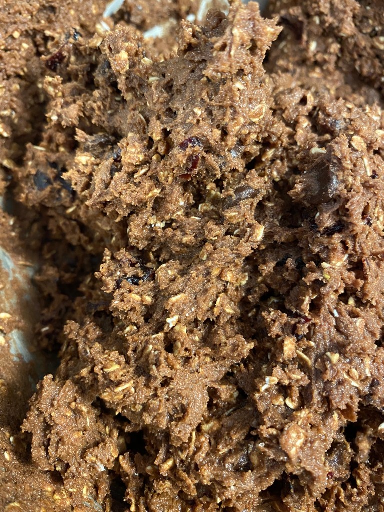 4. Add in the oats, flour, baking powder, baking soda and salt. Stir until all combined.