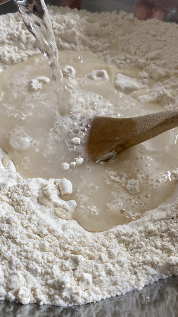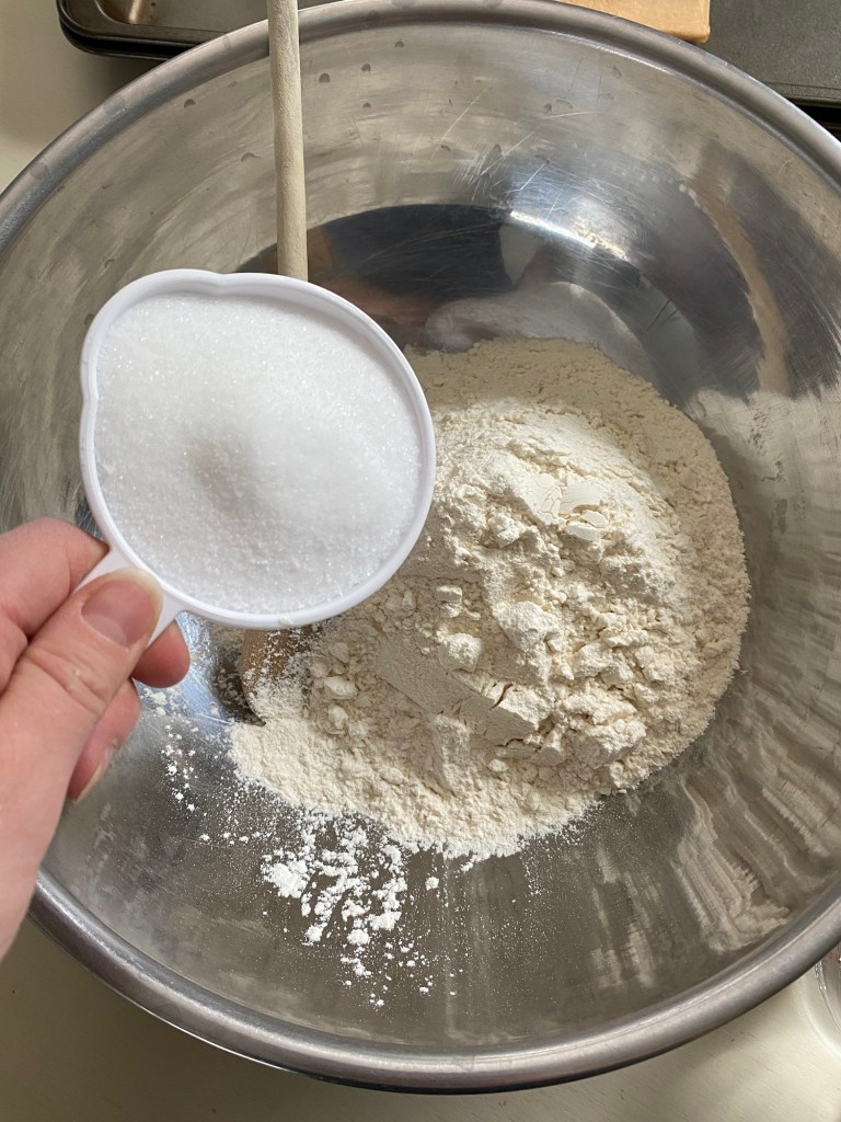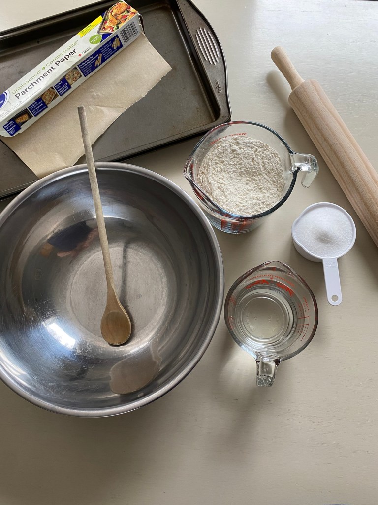 Mix flour and salt together in medium size bowl. (Add any additional sparkles or cinnamon if you want at this point, but keep in mind if you want to paint later on it may not matter too much!)