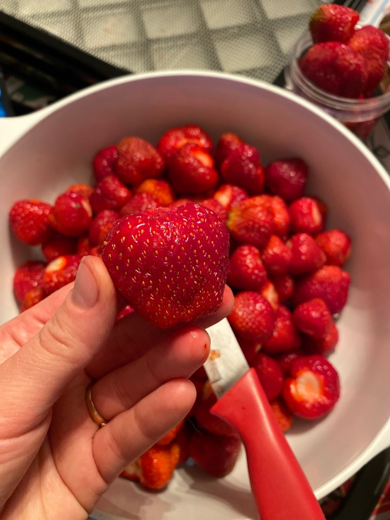 After our trip to a local strawberry farm and sharing last week about how to dehydrate strawberries, I’ve been having some fun developing ways to enjoy the dried strawberries (other than the fam and I simply snacking on them as chips!).